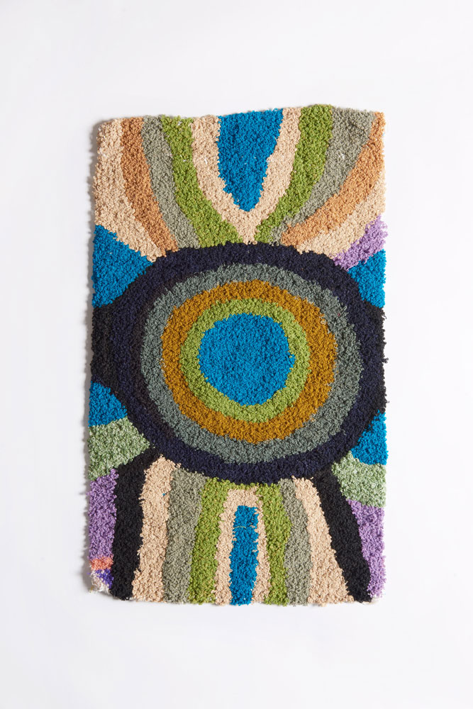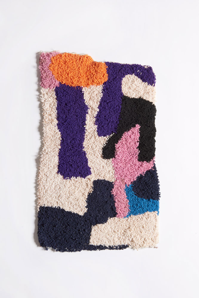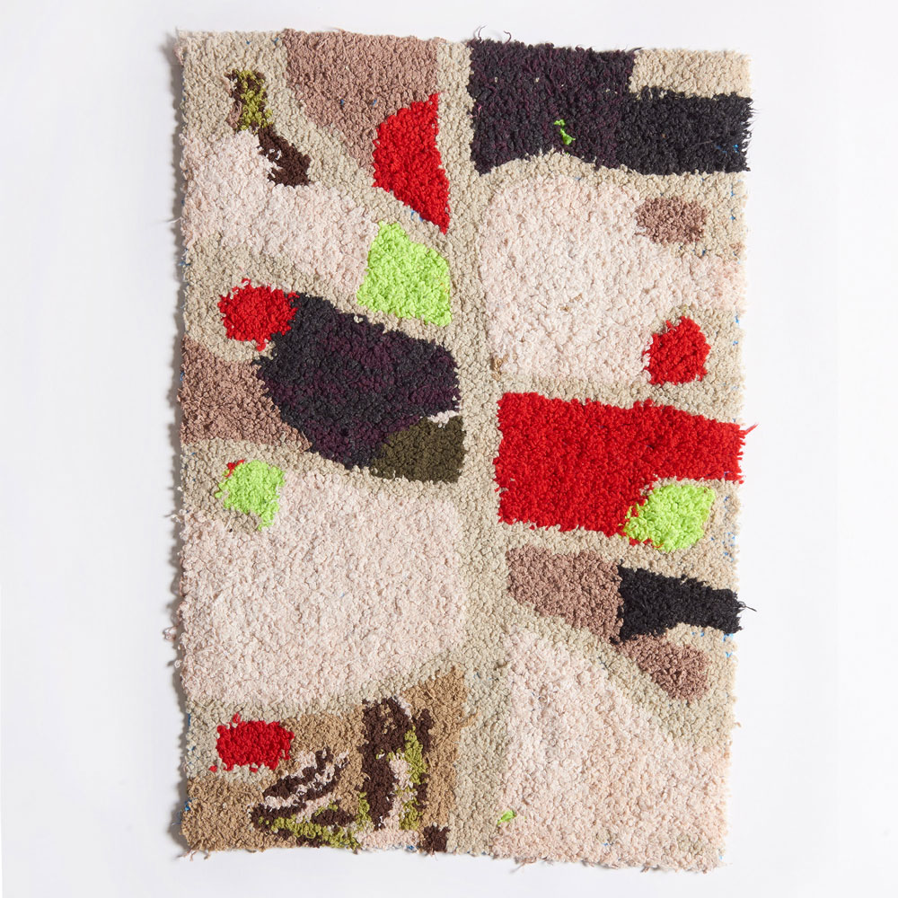Measuring around 60cm by 100cm, these rugs are one-off fusions of creativity and sustainability. On a backing cut from the strong woven plastic of grain bags, Zindekh women traditionally form a mosaic of colour and texture using materials that would otherwise go to landfill. They recycle the family’s worn-out clothing, unravelling yarns from old knitwear and incorporating twine and packing materials. Despite being made by craftspeople with no formal artistic education, the finished compositions resemble modernist masterpieces by Kandinsky, Klee or de Staël.
