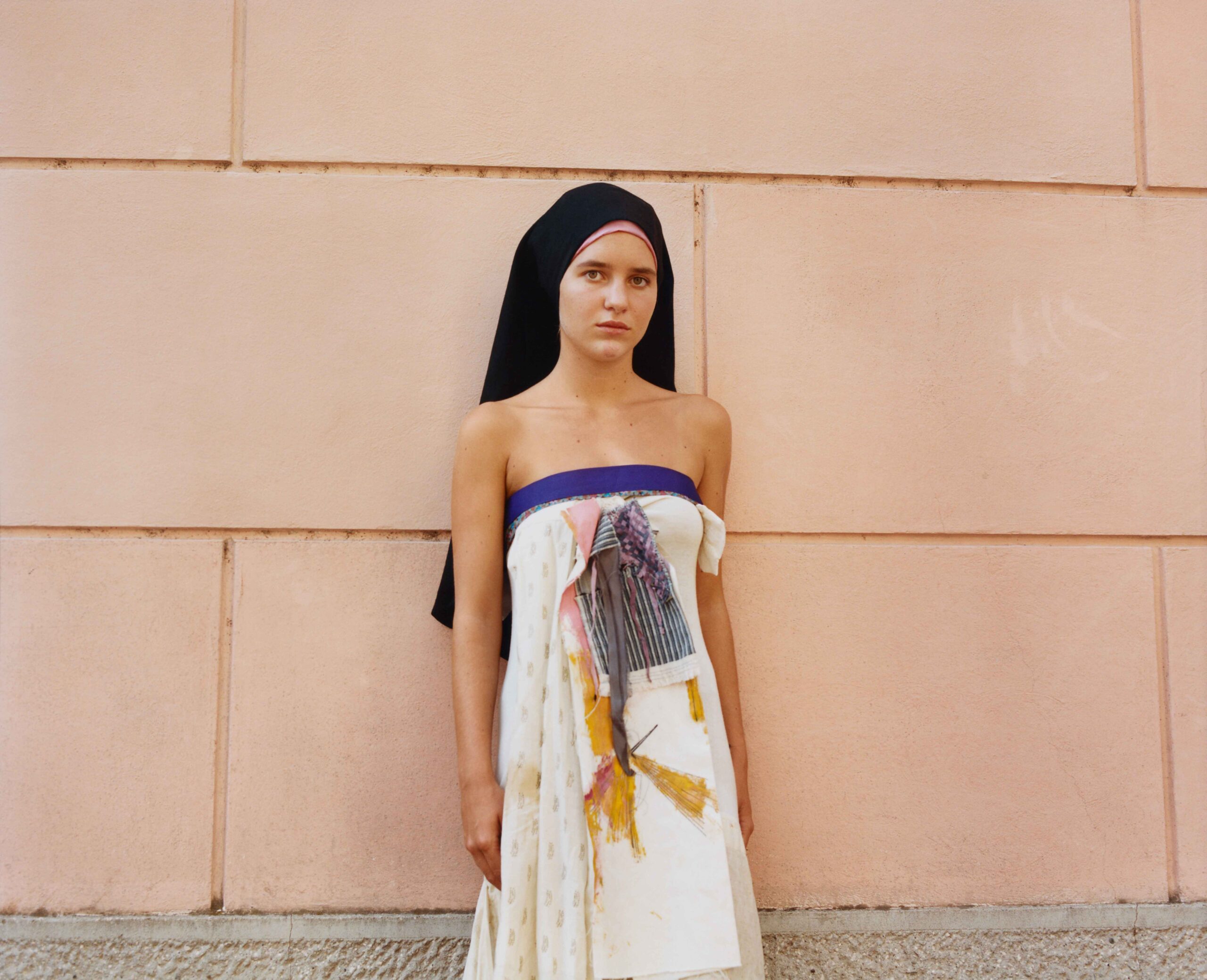 Pink top (2010), £773.50, bodysuit (2008), £1,547, and belt (used as sash) from RUN 12: God is a Jacket installation (2018), all by Susan Cianciolo. Headband, stylist’s own. Earrings by Slim Barrett