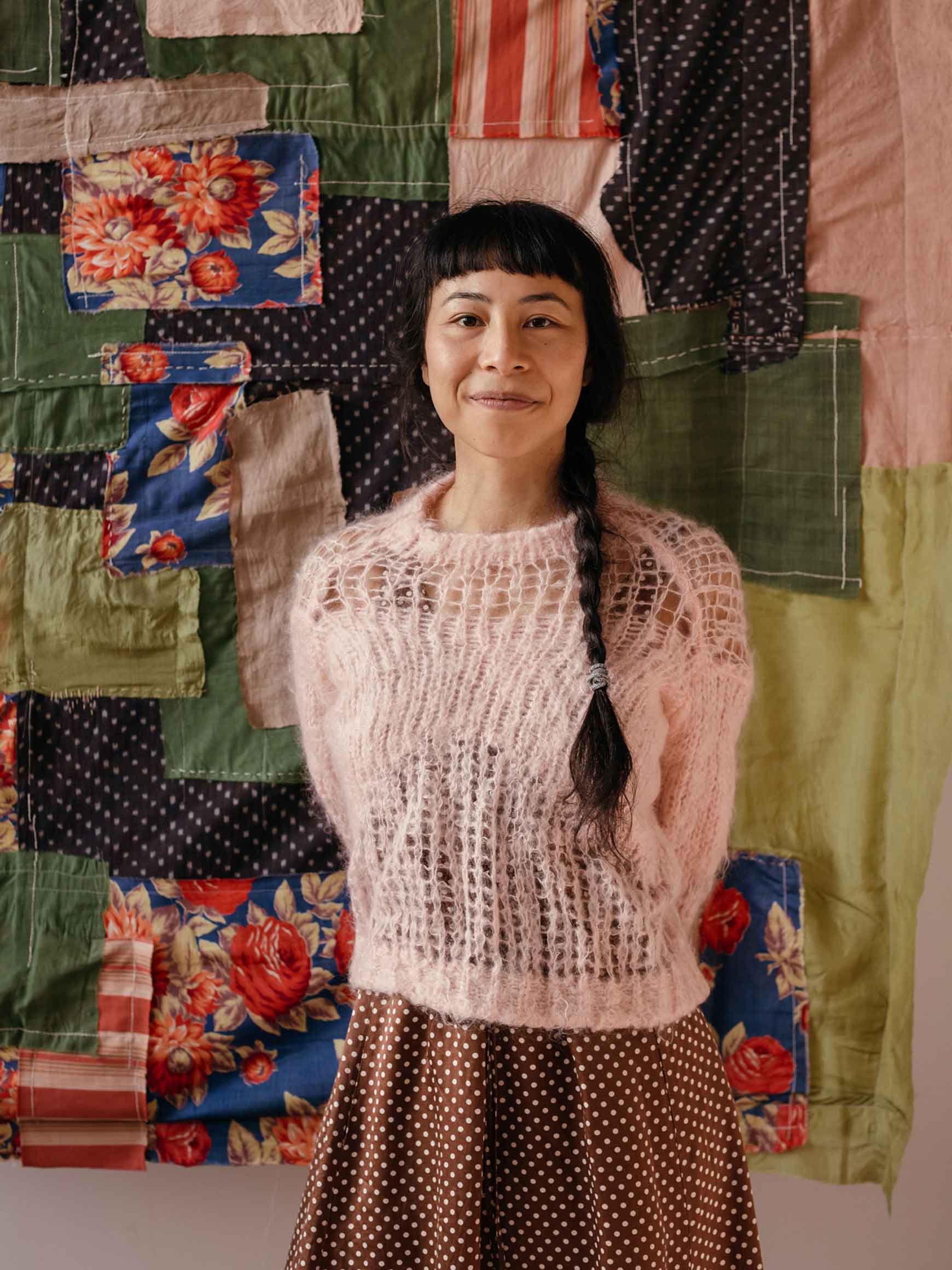 In a fruitful moment of happenstance, Megumi and I were paired up in conversation at 2am outside a bar during Milan’s Salone del Mobile a few years ago. I loved hearing about her textile projects (which she primarily created to accompany movement pieces), so she was the first person I reached out to about creating textiles for the shop. Megumi infuses American folk quilting traditions with Japanese boro– intricate stitching traditionally used to repair and embellish large textile pieces – reflecting both sides of her parentage.