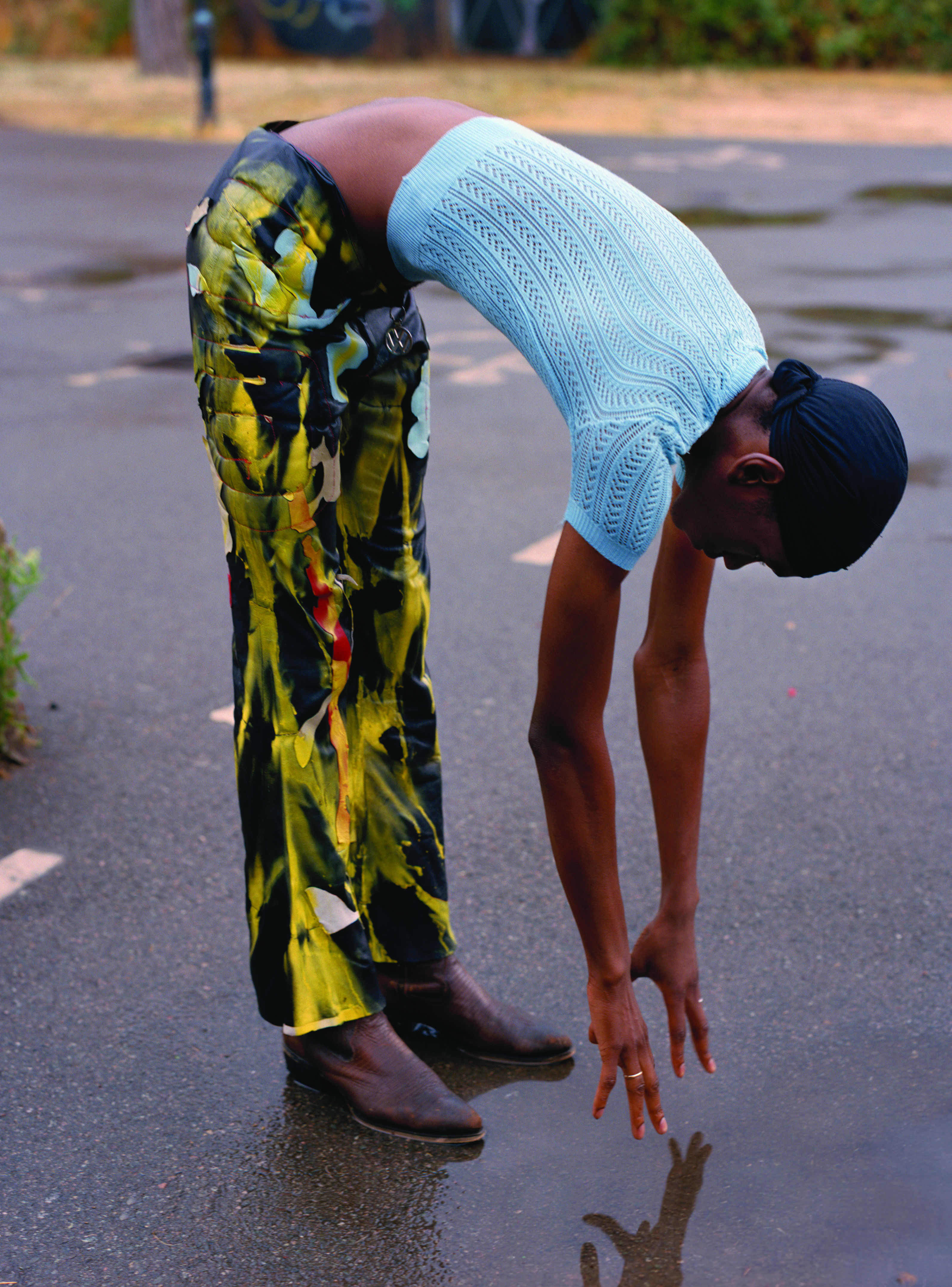 Top, stylist’s own; trousers, £700, by Mowalola; boots, £180, from A Nice Piece