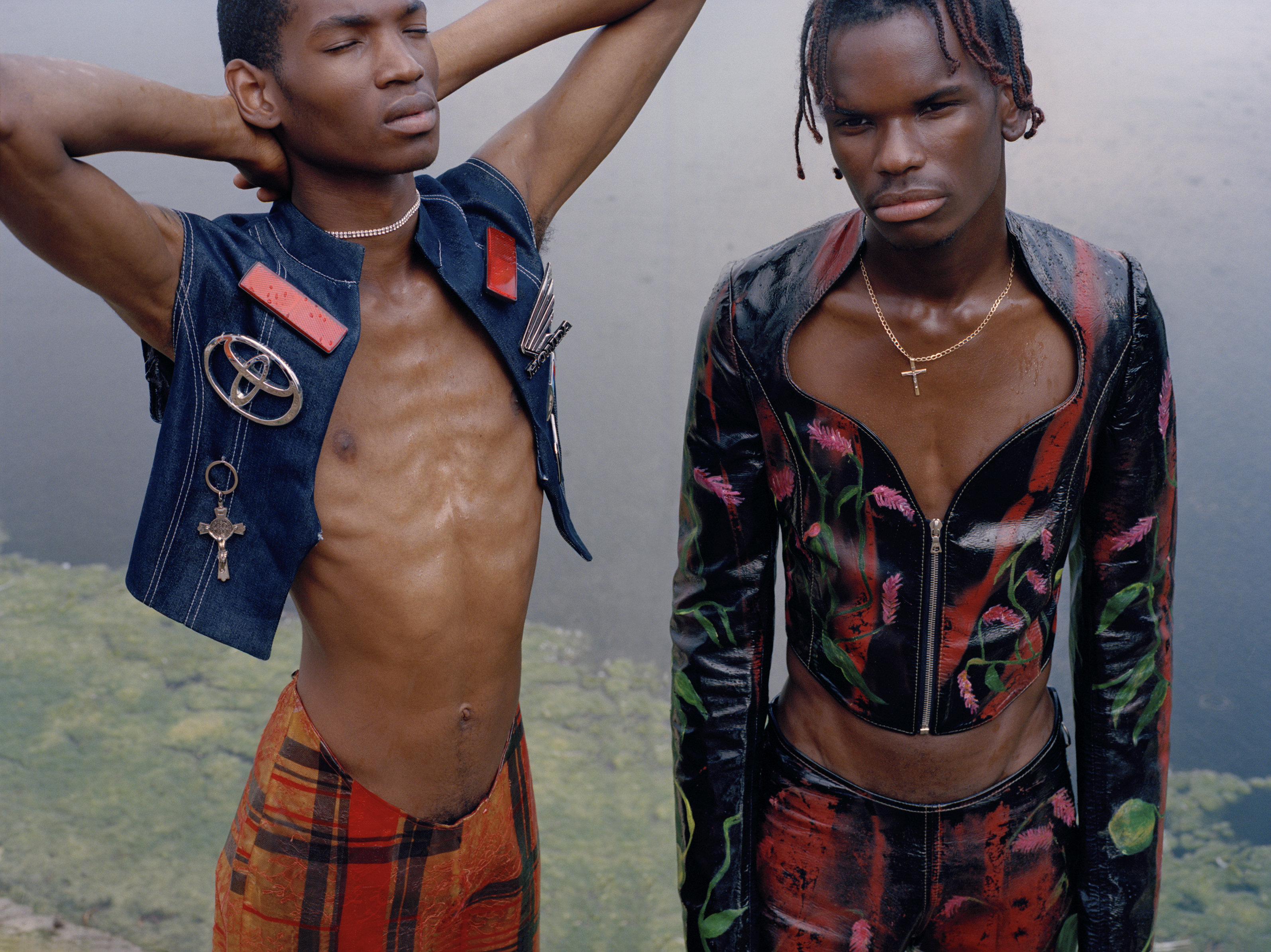 Models: Darius Newell at The Squad and Dominic Augustin at SUPA. Hair: Teiji Utsumi at Bryant Artists. Make-up: Ammy Drammeh at Bryant Artists. Casting: Clémence Orozco Bello at Lock Studios. Catering: The Ingredientist. Photography assistant: Benjamin Whitely. Fashion assistant: Letizia Maria Allodi. Production: Chantelle-Shakila Tiagi