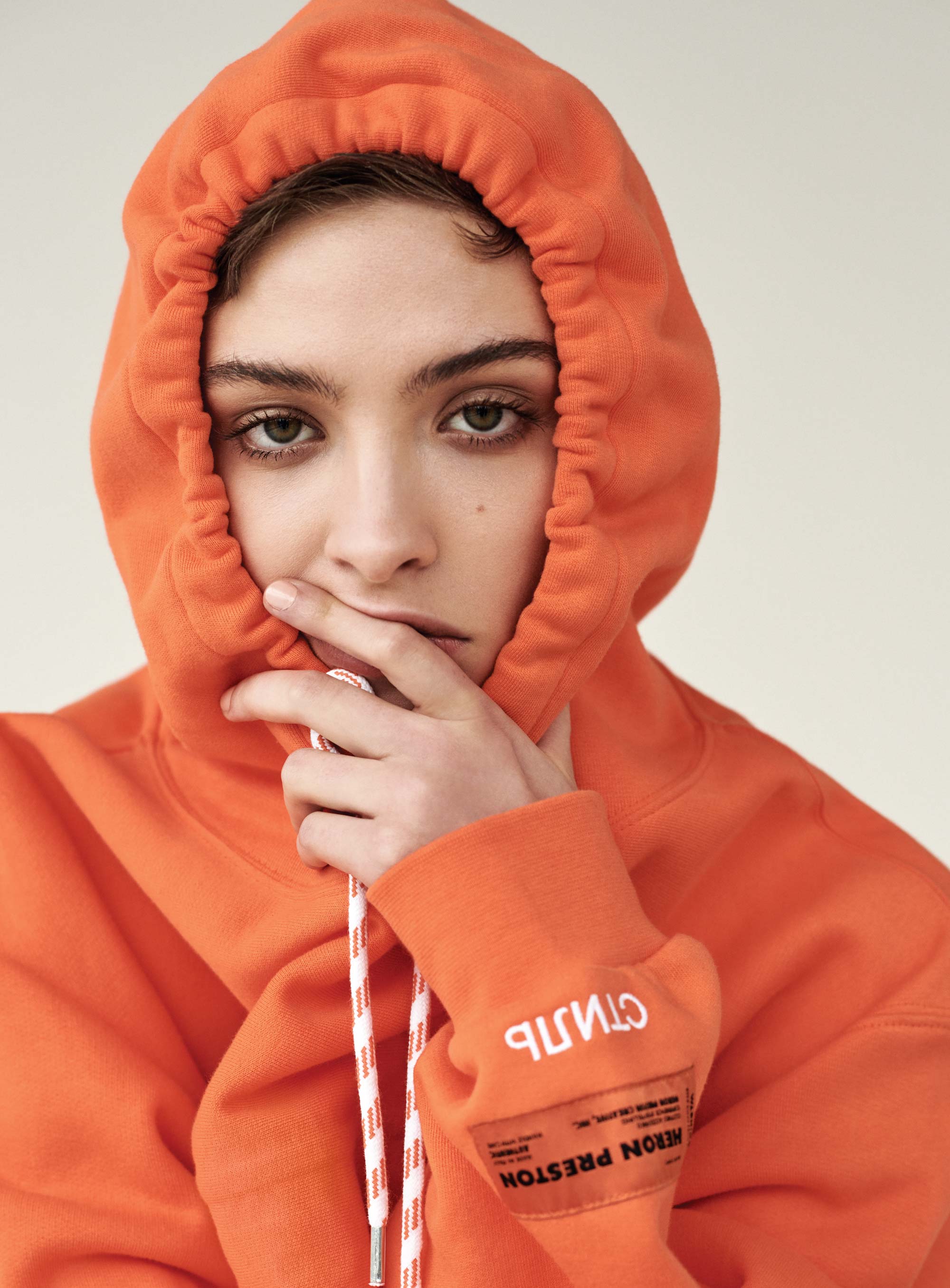 Next on Preston’s ongoing quest? “Cotton. My brand is taking baby steps with recycling, but it’s becoming a damaging material and it’s from the Earth, and we all wear it.” The Carhartts in his collection are repurposed deadstock material, and he’s gone back to school, taking an internship with sustainability pioneer and designer Eileen Fisher. The quiet and minimal environs of Fisher’s design studio may seem an unexpected place to find one of fashion’s buzziest polymaths, but Preston is keen to credit Fisher as one of the most important trailblazing brands. “My dream,” he says, “is to be 100% upcycled.”