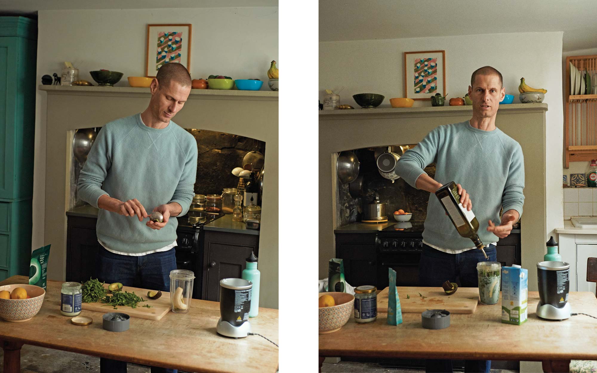 On waking up fully, I will mentally plan out the day ahead and decide when I should fit in a swim. After making the necessary coffee I require to function – which I recommend drinking in bed, as it feels oddly romantic – I do some stretches. They are only simple ones, and I don’t bother with a mat. These should be done in whatever you wore to bed; not yoga pants, that’d be too earnest. Food follows all this, and my menu rarely changes: toast and poached eggs. Before leaving the house, I make a smoothie, which I have making down to a couple of minutes. Mornings are not for milling around.