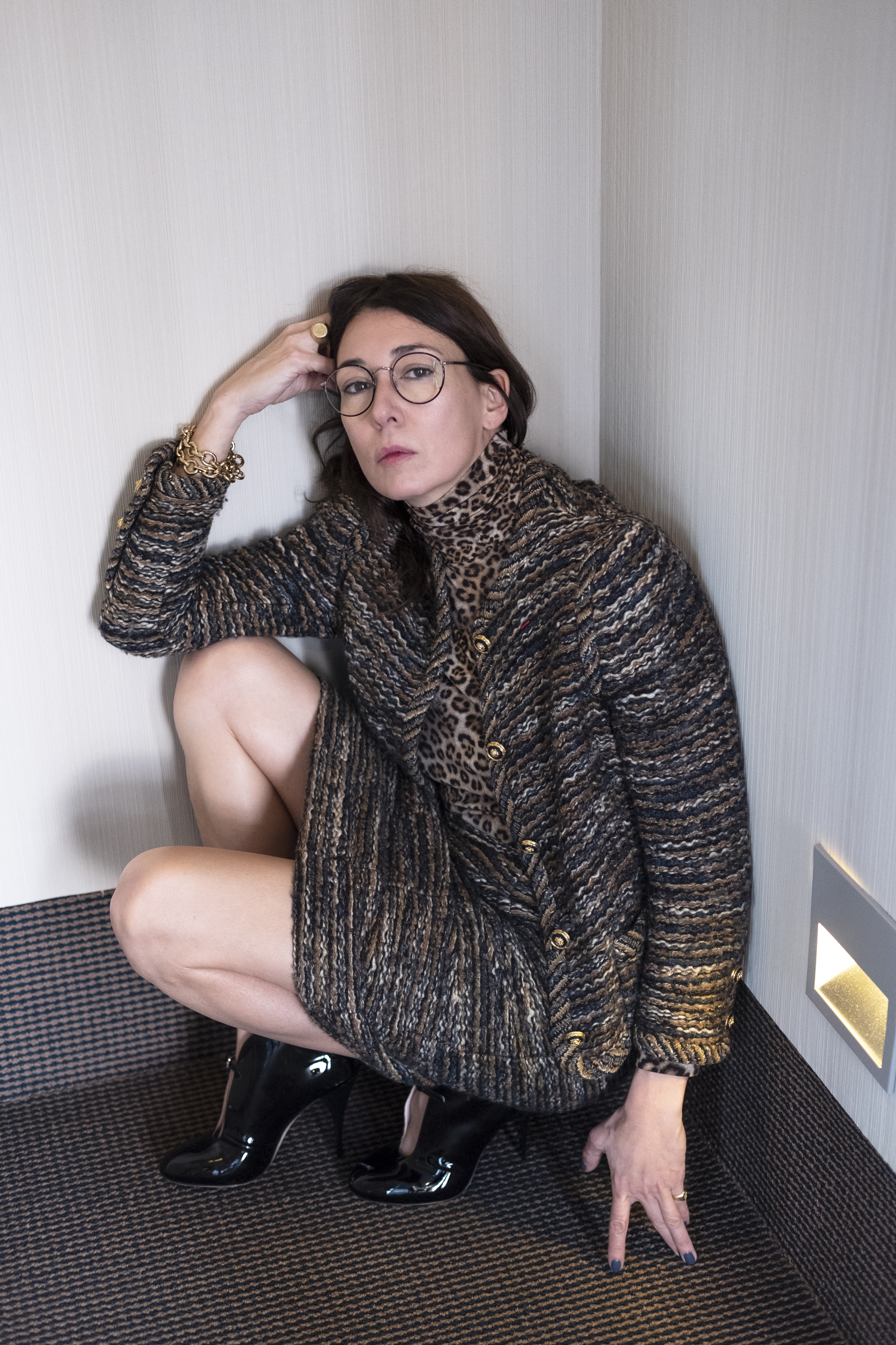 “This is a Chanel couture suit from around 1965, made in the Mademoiselle Chanel era. I bought it 10 years ago and wore it a lot. I wear it a bit less now, because I feel I look old in it. I loved the fact the fabric was quite anti-bling, but with precious buttons. After buying it, I also discovered that it has a special Legion d’Honneur embroidery on it: a fine red thread discreetly sewn on the left side, for people who don’t want to wear the real thing (quite understandable). It is like using counterfeit money: that embroidery is intended for heroes and heroines of some sort. Very few women were on the list of Legion d’Honneur, so this suit is very special to me. I dream of finding out who owned this suit; I just hope her presence is protecting me and giving me strength.”