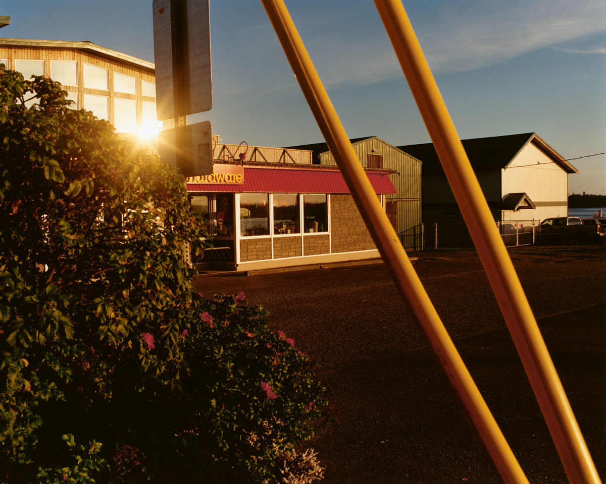 A decade on, with a photographic practice that has taken him from highly original fashion campaigns to finding a distinctive alchemy in pictures of global locations (coming full circle with the publication of his book Preston Bus Station in 2017), Hawkesworth took some time to travel and reflect. Journeying northeast by road from Los Angeles up to the Haida Gwaii archipelago on Canada’s Pacific coast, his aim was to photograph less – if at all – and write more about his experiences. Many of us can relate to the act of stepping back from a learnt action to take account of where a practice has taken you. Hawkesworth made his way to a shoreline cabin in Haida Gwaii, where the local café was inside a reconditioned school bus, to write every day and take occasional photographs. In this remote and almost outoftime place, he made some of his most subtle images to date. He describes them as “kind of nonphotographs”, more sentiment than narrative in their poetic sense of time and place.