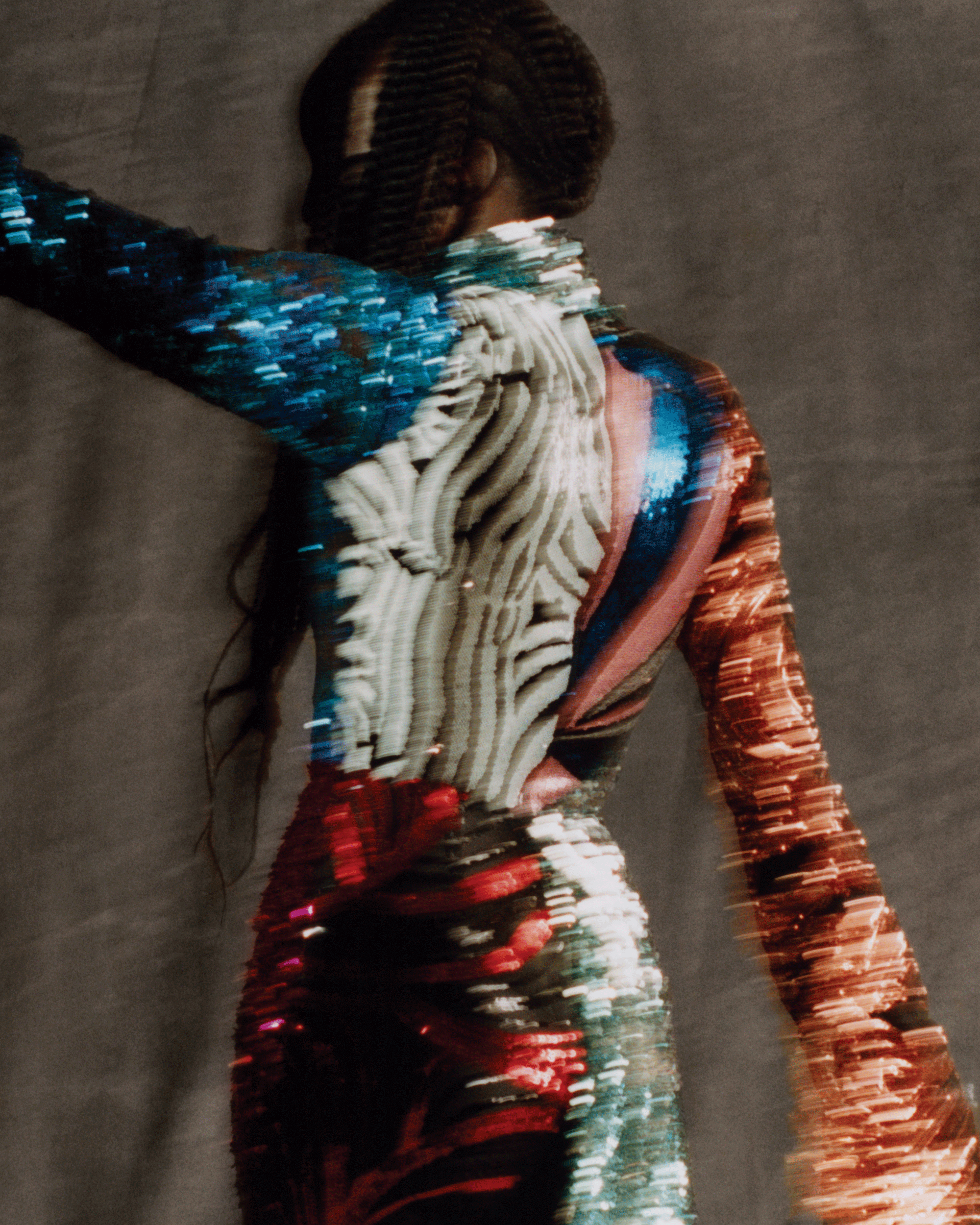 “Halpern has always been about the juxtaposition of textures, materials, and colours. For this piece, we wanted to explore how far this could be taken, using fabrics from past seasons working against each other to create a mega-glamorous and high-voltage garment. It was exciting to breathe life into unused things in a way that we hadn’t explored previously.”