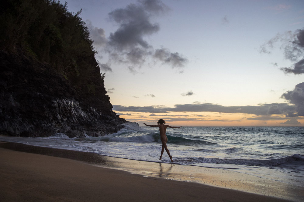 “My childhood summers were spent on a small island in the Muskokas surrounded by deep, cold Canadian waters. The rustic cottage was built by my great-grandfather and had no electricity or indoor plumbing. The sun lit our days and our nights were illuminated by the glow of kerosene lanterns and candlelight. Each night I fell asleep listening to the haunting calls of loons echoing across the lake and the sound of wood sparking in the fireplace while elders murmured and rocked in ancient creaking chairs by the crackling fire. By day, like an animal, I roamed free, naked, bare feet racing along the paths that deer made in the dappled birch forest. It was here, in this sacred space of nature, that I learned to commune with sound and silence and space. It was here that my small child self delighted that ‘tree’ rhymed with ‘me’ and that if you spelled ‘dog’ backwards it was ‘God.’ It was here I learned to be human. It was here I learned to be me. In Latin, ‘humus’ means ground. Quite literally our connection to the earth is the foundation upon which our ‘human beingness’ depends. Let us always remember and act as such.” Shalom Harlow, model